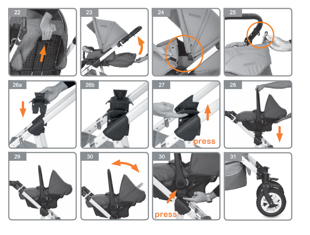 ➢ ручка на капюшоне для удобного переноса люльки с ребенком;